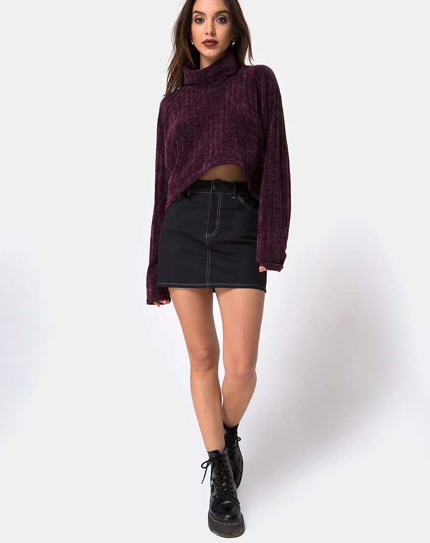 Mini Broomy Skirt in Black with White Stitch